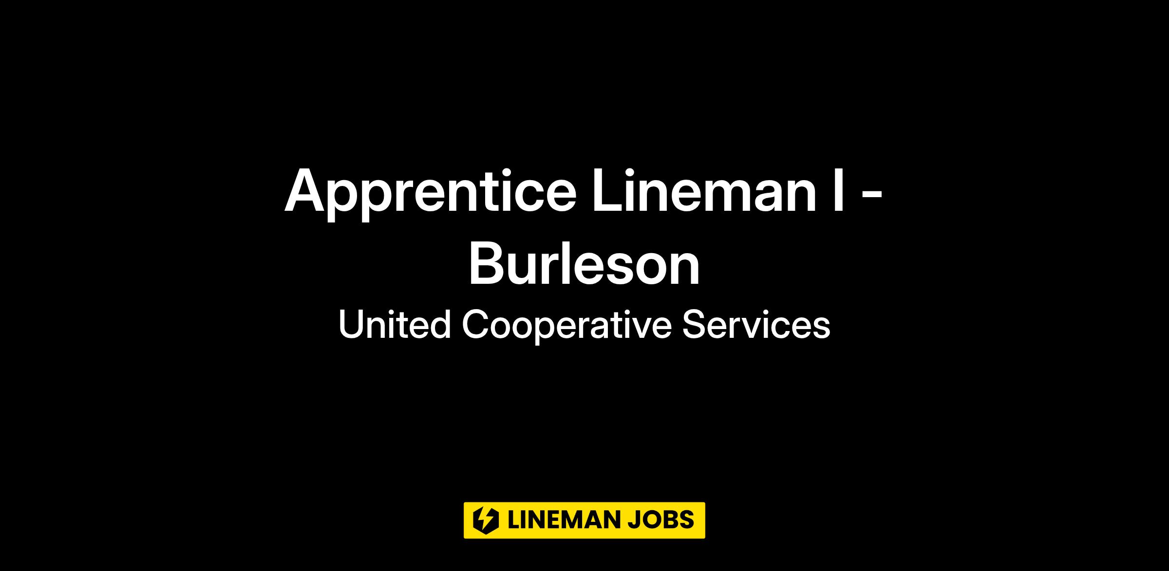 United Cooperative Services has an open position for an Apprentice Lineman I for our Burleson Operations Department.