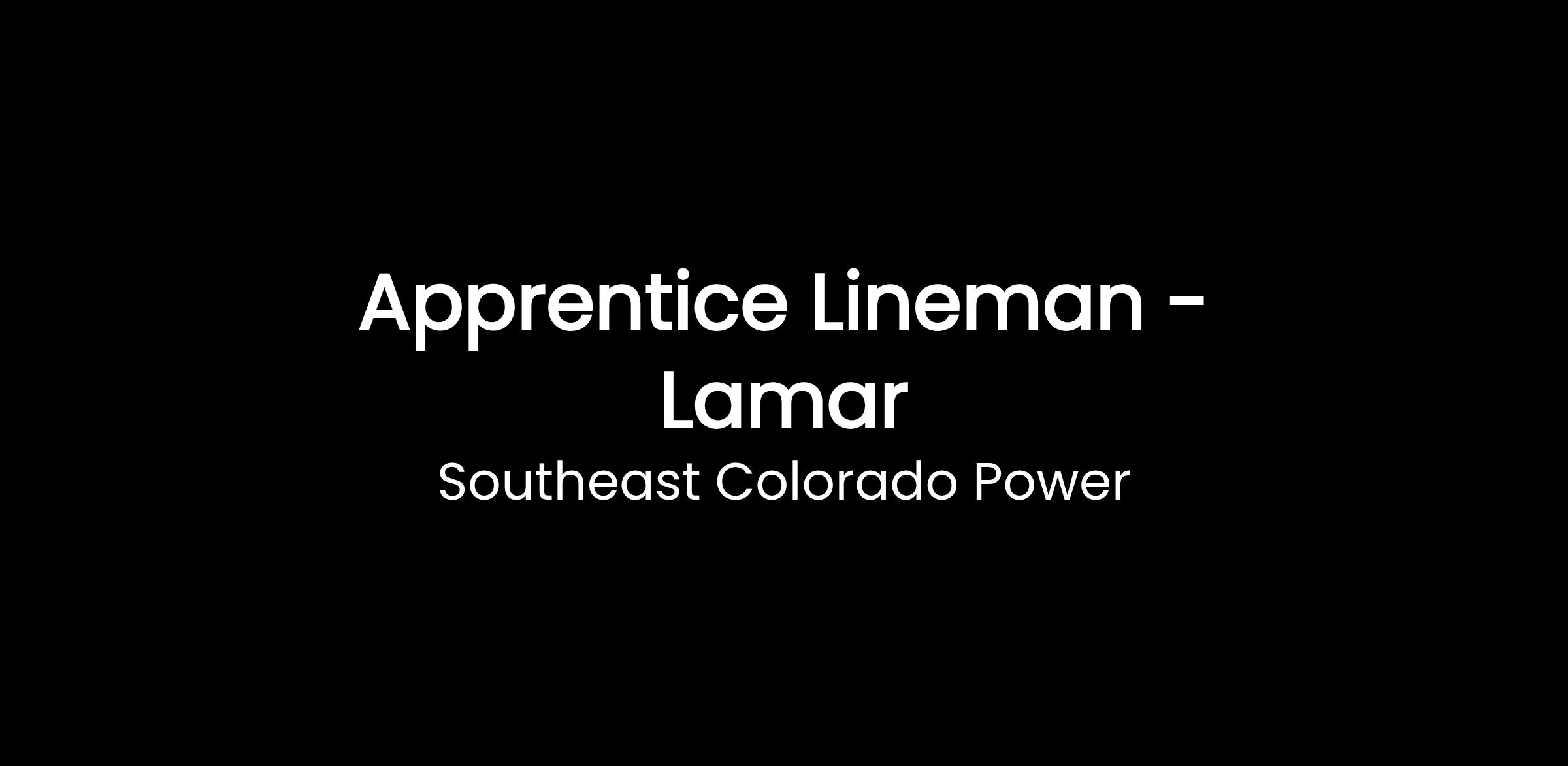 We are looking for an Apprentice Lineman in our Lamar, Colorado location. Southeast Colorado Power Association (SECPA) is a member-owned rural electric cooperative that provides electric service to over 10,500 AMI meters at 55MW peak. The 13,000 square mile service territory covers all or parts of 11 southeast Colorado counties with 5700 energized line miles (14.4kV, 24.9kV, 69kV). SECPA is headquartered in La Junta, Colorado with three satellite locations in Eads, Lamar, and Springfield. We offer competitive salaries and a comprehensive benefits package.