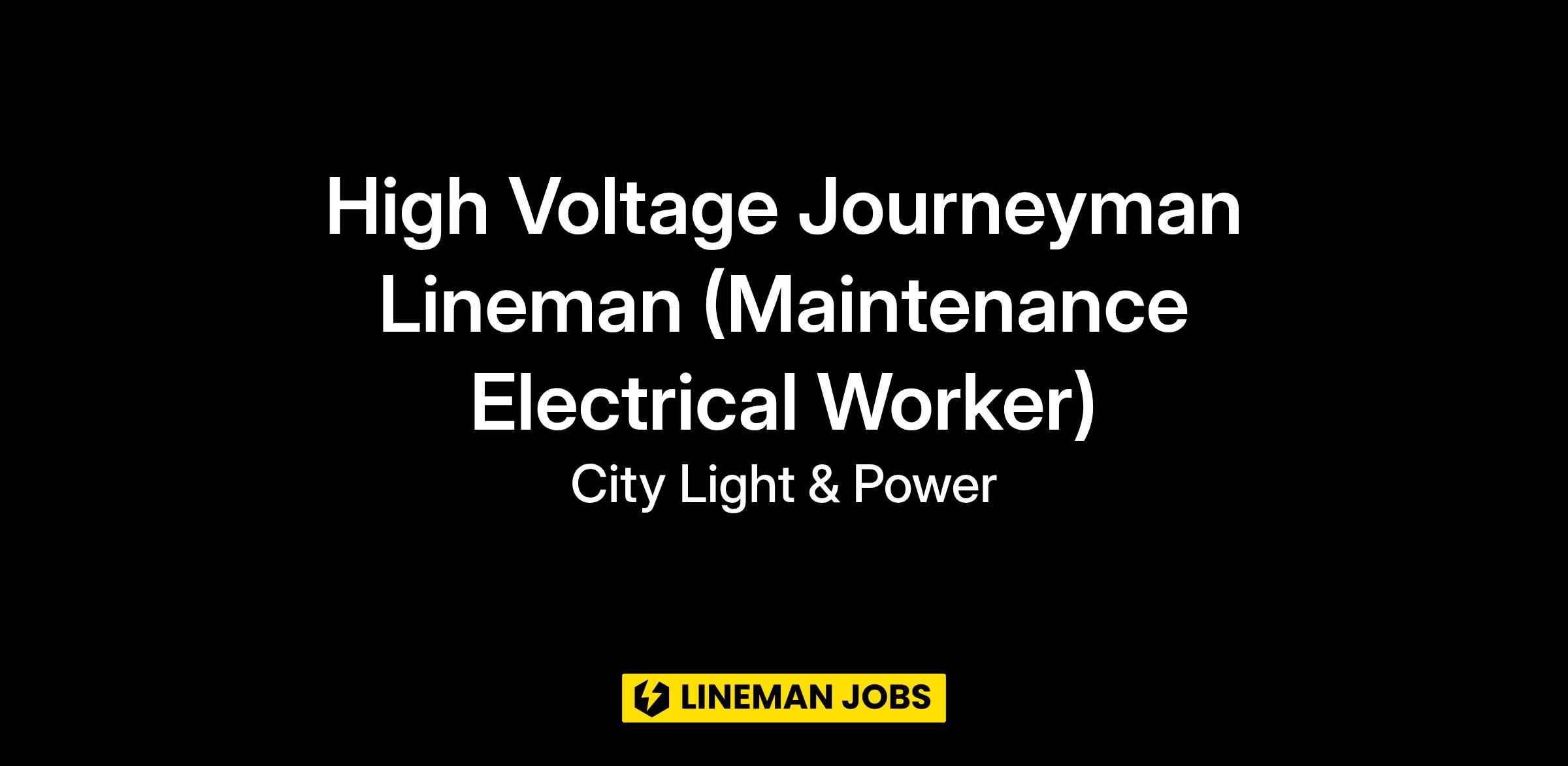 High Voltage Journeyman Lineman (Maintenance Electrical Worker)