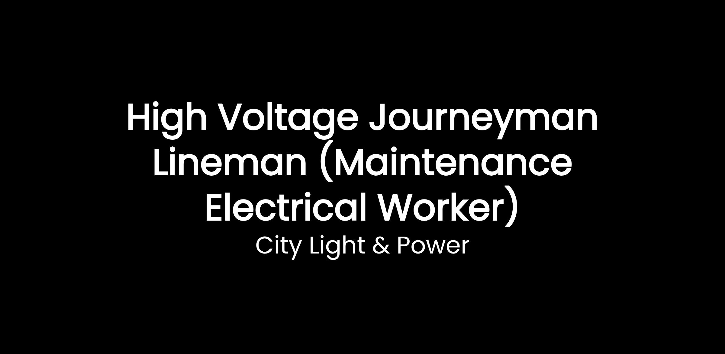 High Voltage Journeyman Lineman (Maintenance Electrical Worker)