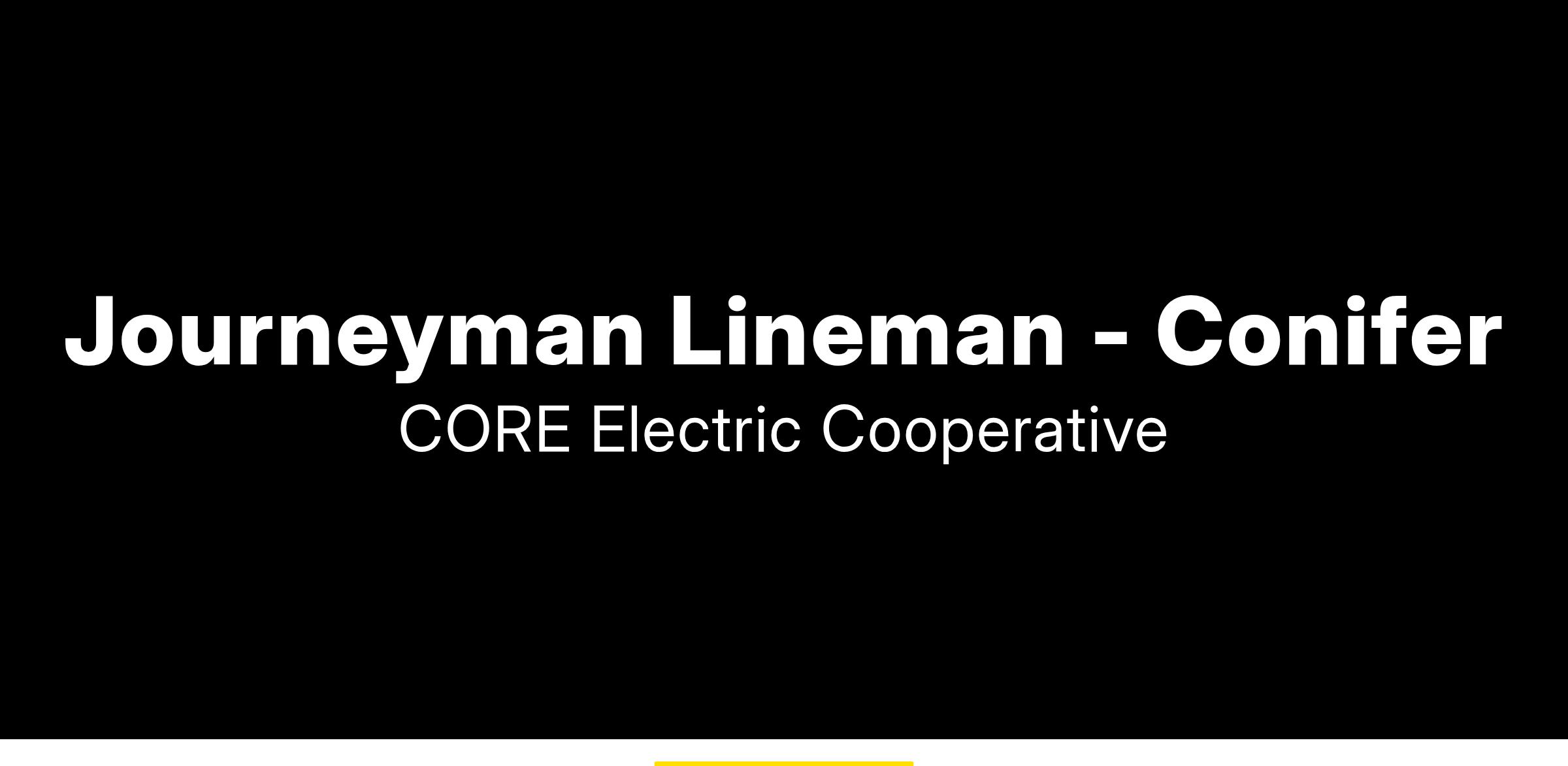 CORE Electric Cooperative is seeking a Journeyman Lineman to join our District Operations team, reporting to the District Line Superintendent, located in our Conifer Office. This role is responsible for the performance of labor necessary for the construcΒtion and maintenance of electrical distribution and transmission lines.