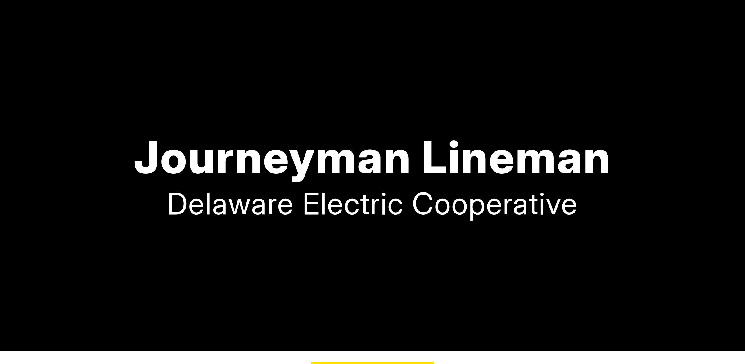 Delaware Electric Cooperative, Inc. (DEC) is a progressive, member-owned electric distribution cooperative seeking an experienced candidate to fill the full-time position of JOURNEYMAN LINEMAN.