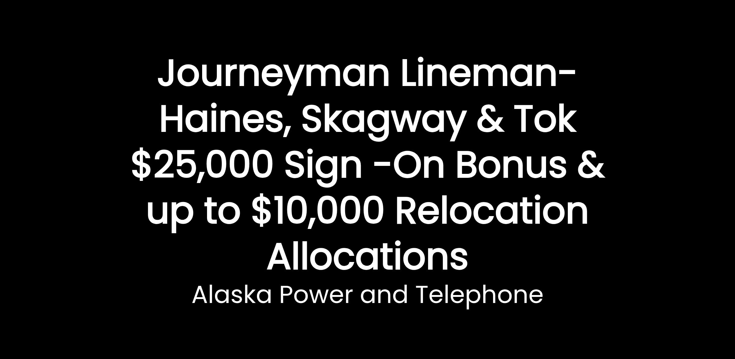Journeyman Lineman including up to a $25,000.00 Sign-on Bonus & up to $10,000.00 in Relocation Allocations.