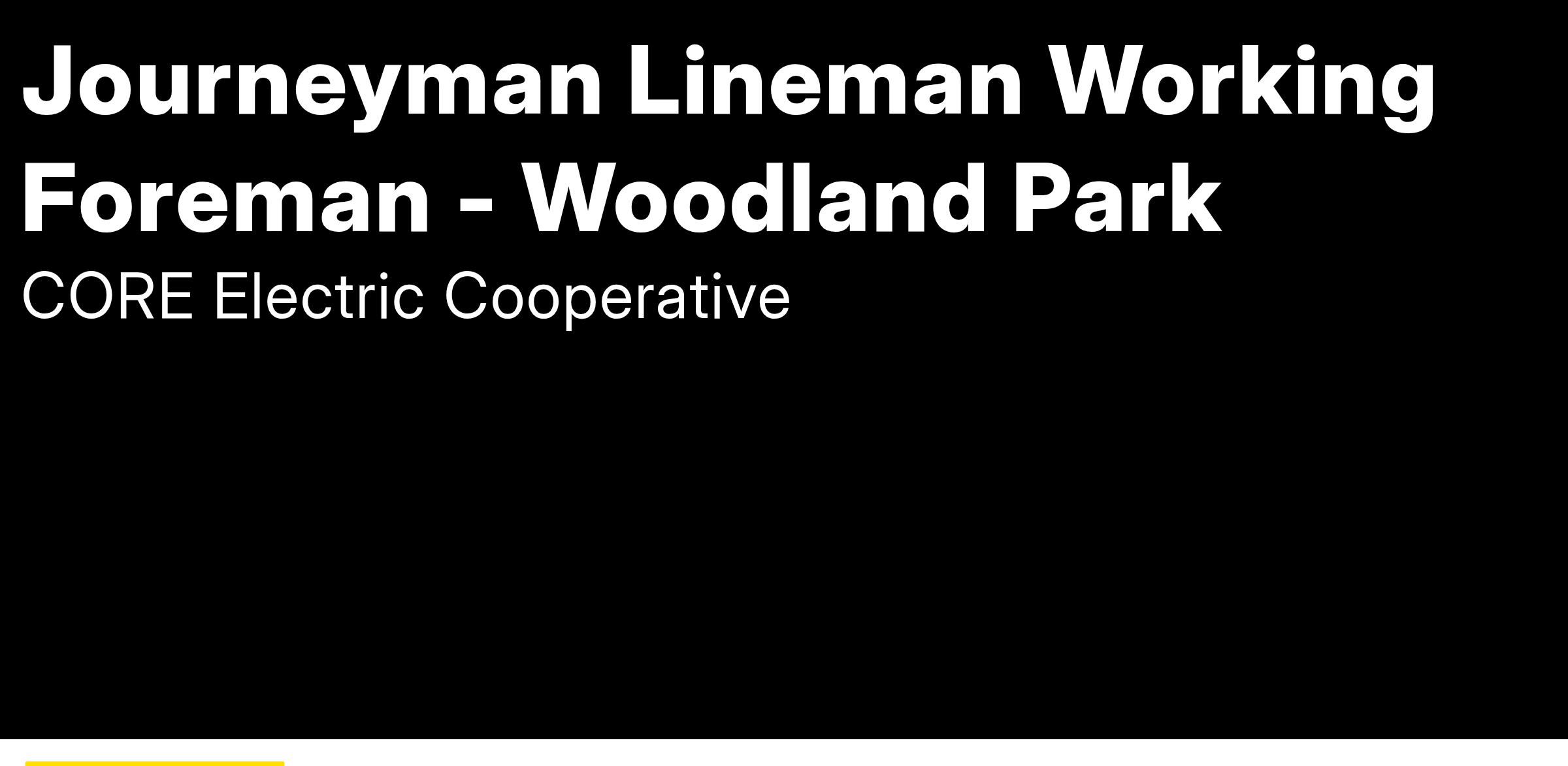 CORE Electric Cooperative is seeking a Journeyman Lineman Working Foreman to join our Operations team, reporting to the District Line Superintendent, located in our Woodland Park Office. This role is responsible for the performance of labor necessary for the construcΒtion and maintenance of electrical distribution and transmission lines.