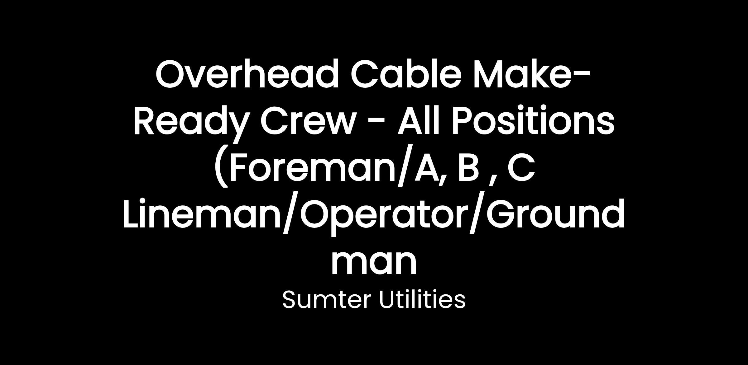 Sumter Utilities, Inc. (a Quanta Services company) seeks an entire Overhead Cable Make-Ready Crew (Foreman/A Lineman/B Lineman/C Lineman/Operator/Groundman).