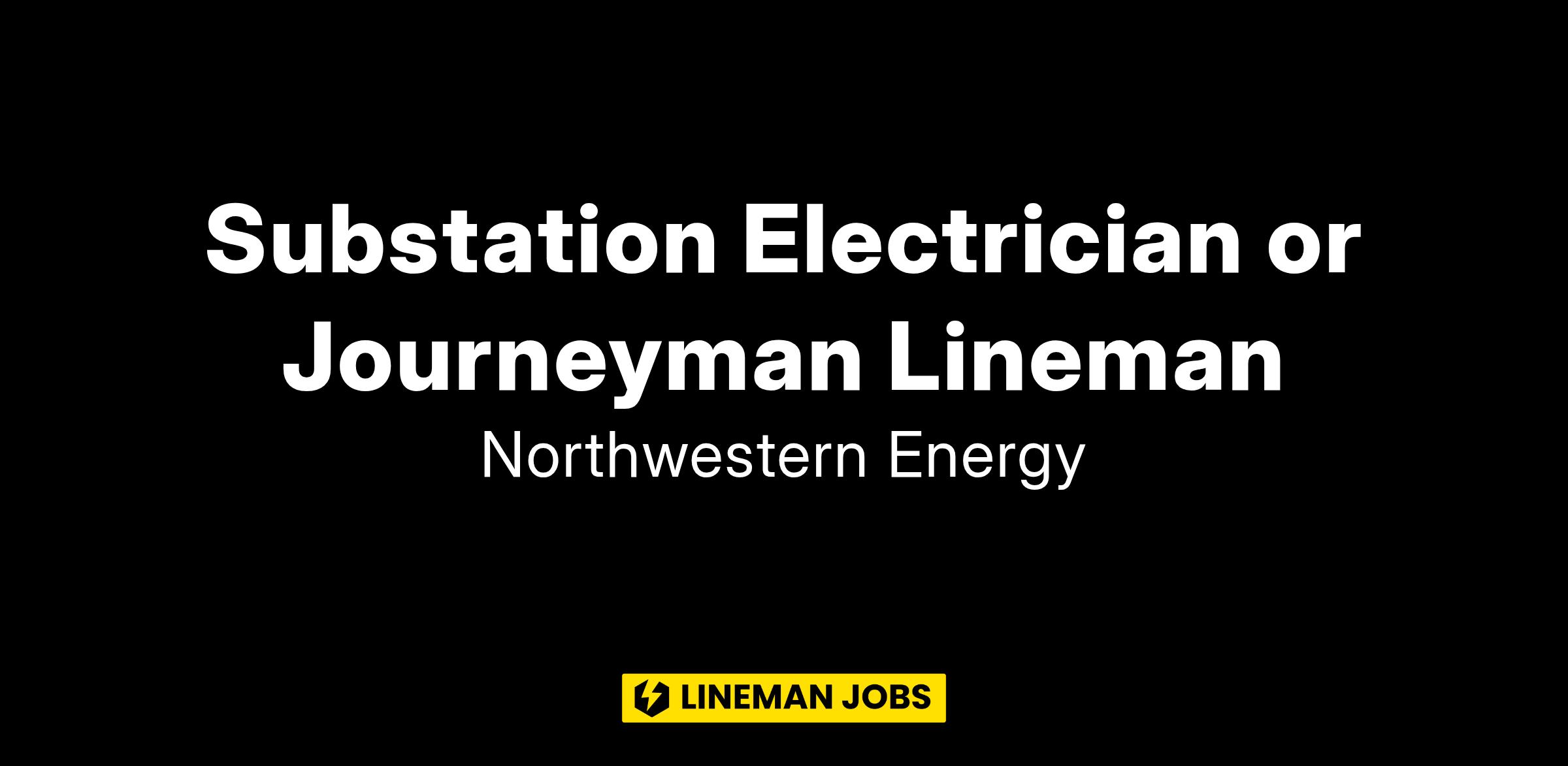 Substation Electrician or Journeyman Lineman