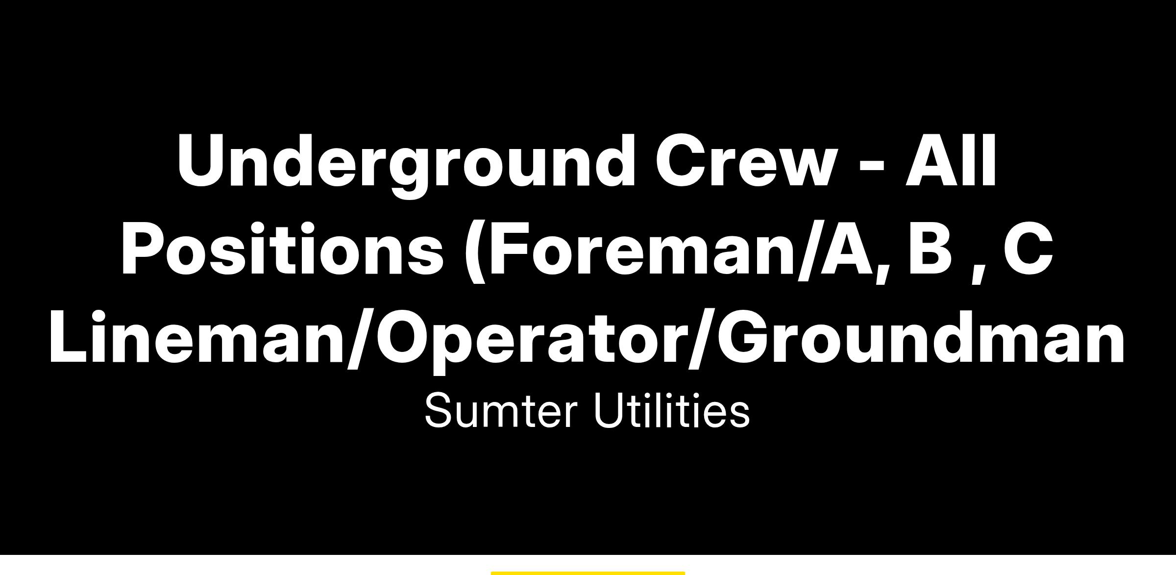 Sumter Utilities, Inc. (a Quanta Services company) seeks entire Underground Crews (Foreman/A Lineman/B Lineman/C Lineman/Operator/Groundman).